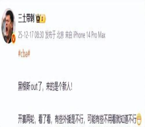 既然放弃了黑根斯,山西男篮还要补充新的外援,从媒体曝光的消息来看,山西男篮继续开盲盒,引入一位新的外援。至于说,这位新的外援,能不能来了即插即用,还要看实战效果来看。